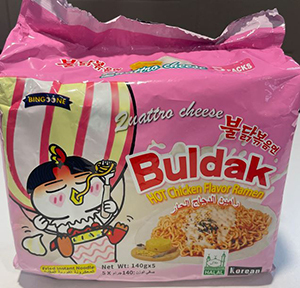국문 '불닭볶음면' 문구와 함께 영문으로 크게 'Buldak'이라고 써넣은 제품은 중국, 사우디아라비아, 러시아 등지에서 판매되고 있다.