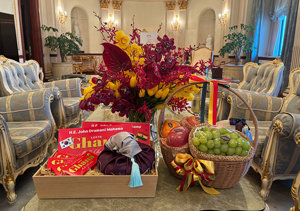 [문화투데이 김태균 기자] 청와대는 11일 이재명 대통령과의 정상회담을 위해 전날 입국한 존 드라마니 마하마 가나 대통령에게 특별 제작한 '가나 초콜릿'을 선물했다고 밝혔다.