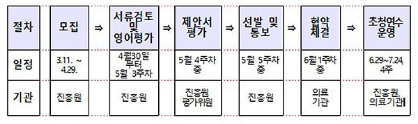 의료기관이 해외 의료인을 직접 발굴해 최대 4명까지 신청할 수 있고, 진흥원이 기존에 협약을 맺은 전략 국가(몽골·루마니아) 추천 연수생과 매칭될 경우에는 최대 5명까지 지원받을 수 있다.