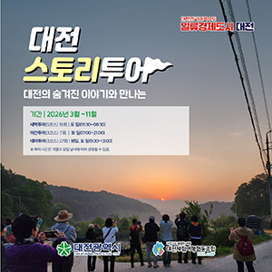 [문화투데이 장은영 기자] 대전시는 지역의 숨은 명소와 역사·문화 자원을 체험할 수 있는 '2026 대전스토리투어'를 3월부터 11월까지 총 50회 운영한다고 13일 밝혔다.