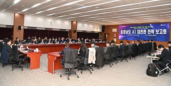 도는 이날 도청 대회의실에서 김태흠 지사와 충남 AI 특별위원회 위원 등이 참석한 가운데 'AI 대전환 추진 전략 보고회'를 개최했다.