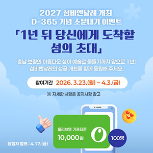 [문화투데이 장은영 기자] 국내 최초로 섬을 주제로 충남 보령에서 열리는 '2027 섬비엔날레' 개막이 1년여 앞으로 다가온 가운데 조직위원회가 대국민 온라인 참여 이벤트를 진행한다.