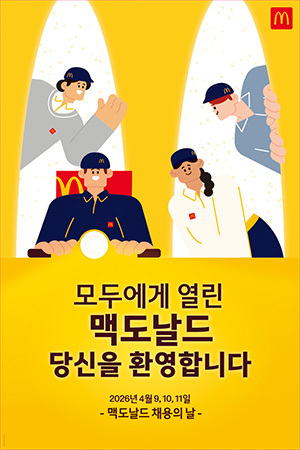 한국맥도날드 관계자는 "학력·나이·성별·장애를 차별하지 않는 '열린 채용'을 지켜왔다"면서 "2030년까지 매장 수를 500개로 확대한다는 목표에 맞춰 채용을 지속 확대하겠다"고 말했다.