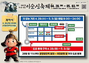 [문화투데이 장은영 기자] 충남 아산시는 오는 28일부터 5월 3일까지 제65회 아산 성웅 이순신축제 기간 주 무대인 온양온천역 일대 교통을 통제한다고 3일 밝혔다.