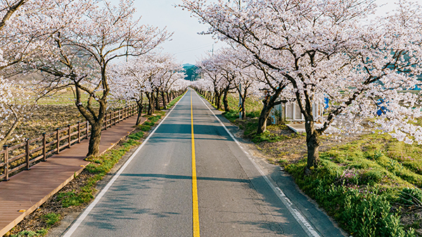보령댐 하류에서 6.7㎞에 걸쳐 왕벚나무 2천여그루가 만들어내는 벚꽃 터널은 보령 대표 봄 명소이다.