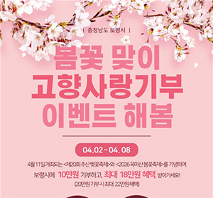 [문화투데이 장은영 기자] 충남 보령시는 오는 8일까지 '봄꽃 맞이 고향사랑기부 이벤트 해봄'을 진행한다고 6일 밝혔다.