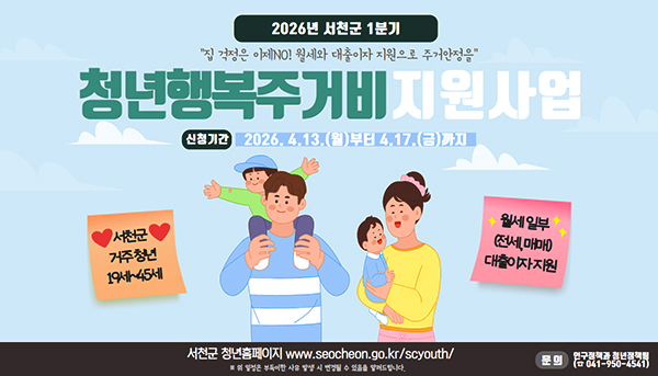 [문화투데이 장은영 기자] 충남 서천군은 청년 행복주거비와 세 자녀 이상 가정 대학생 생활지원금 신청을 받는다고 6일 밝혔다.