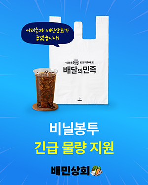 [문화투데이 구재숙 기자] 배달의민족 운영사 우아한형제들은 식자재·배달비품 플랫폼 '배민상회'를 통해 외식업 소상공인에게 비닐봉투 200만장을 무상 지원한다고 8일 밝혔다.