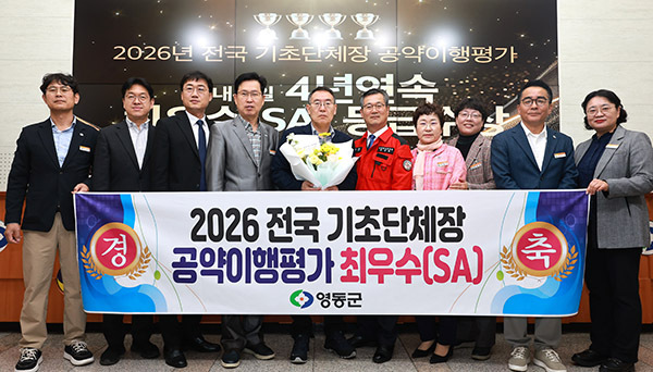 [문화투데이 황재연 기자] 충북 영동군은 한국매니페스토실천본부 주관 '2026 전국 기초자치단체 공약이행·정보공개 평가'에서 최우수(SA) 등급을 받았다고 10일 밝혔다.