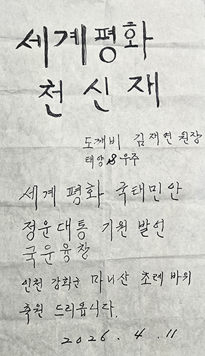 '도깨비 박물관' 김재연 원장은 지난 11일 강화도 마니산 초례바위에서 ‘세계평화 천신제’를 봉행했다. 이번 행사는 국운 융창과 국태민안(國泰民安), 그리고 온 세상에 정원대통(正元大通)의 기운이 가득하기를 기원하는 취지로 마련됐다.