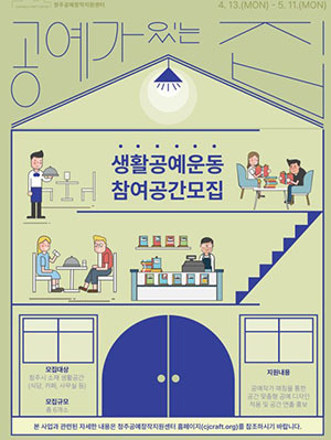 [문화투데이 황재연 기자] 청주시는 5월 11일까지 '공예가 있는 집' 프로젝트에 공간을 제공할 시민을 모집한다고 13일 밝혔다.