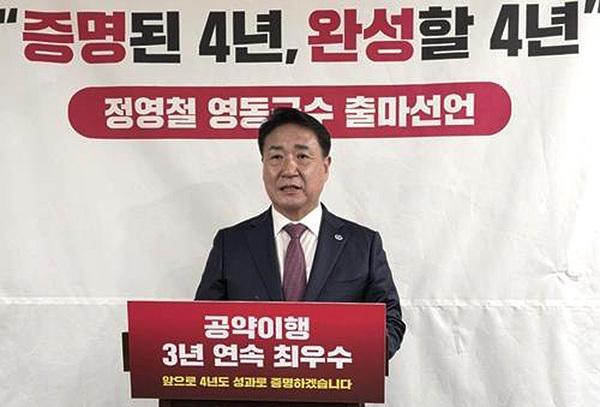 [문화투데이 황재연 기자] 국민의힘 충북도당 공천관리위원회는 영동군수 최종 후보자로 정영철 현 군수가 확정됐다고 14일 밝혔다.