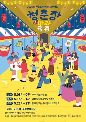 [문화투데이 장은영 기자] 충남 홍성군은 다음 달 8일부터 3주간 금요일과 토요일 홍성상설시장에서 주민참여예산 사업인 '청춘장 in 홍성상설시장'을 운영한다고 16일 밝혔다.