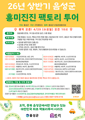[문화투데이 황재연 기자] 충북 음성군은 오는 29일부터 상반기 팩토리투어 예약이 시작된다고 28일 밝혔다.