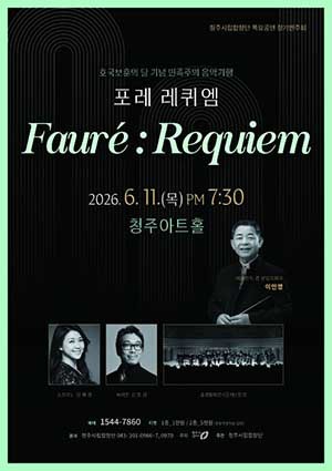 [문화투데이 황재연 기자] 청주시립합창단은 오는 6월 11일 오후 7시 30분 청주아트홀에서 호국보훈의 달 기념 공연 '포레 레퀴엠'을 선보인다고 29일 밝혔다.