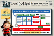 [문화투데이 장은영 기자] 충남 아산시는 오는 28일부터 5월 3일까지 제65회 아산 성웅 이순신축제 기간 주 무대인 온양온천역 일대 교통을 통제한다고 3일 밝혔다. 온양온천역 주변 주요 도로(관광호텔 회전교차로∼온양온천초등학교 사거리)와 국민은행(온양종합금융센터점) 앞까지 700m 구간의 차량 진입이 제한된다. 시는 교통통제로 인한 시민 불편이 예상되는 만큼, 이를 최소화하고 축제를 찾는 시민들에게 더 큰 만족을 제공하기 위해 다양한 콘텐츠와 편의시설을 준비하고 있다. 먼저, 지역 특산물을 활용한 '충효의 밥상' 먹거리존에서 관내 선별된 음식점들이 선보이는 이순신 테마의 특색있는 음식을 맛볼 수 있다. 푸드트럭존과 다문화음식존에서도 축제의 먹거리를 한층 풍성하게 구성했다. 축제를 함께 만드는 시민들이 준비하는 70여 개의 체험·홍보존에서 다양한 콘텐츠를 오후 9시까지 즐길 수 있으며, 휴식 공간과 동선도 개선해 쾌적한 관람 환경을 조성한다. 전통시장 내 이벤트 광장에서 마술쇼와 병영 체험 등 어린이 동반 가족 특화 프로그램을 선보이며, 상권 체류형 콘텐츠를 강화해 실질적인 지역경제 활성화 효과를 극대화할 방침이다. 김선태 문화예술과장은 "시민과 관광객 모두